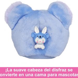 La serie Disfraces Conejo Koala presenta un conejito adorable disfrazado de koala, escondiendo debajo una muñeca Barbie articulada con una melena larga y colorida. Este diseño único permite a los niños disfrutar el desvelar la muñeca y transformar el disfraz de peluche en una chaqueta polar, utilizando además la cabeza del disfraz como una cama para la minimascota incluida.