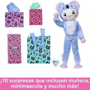 ¡Prepárate para una dulce aventura con la muñeca Barbie Cutie Reveal Serie Disfraces Conejo Koala! Esta encantadora colección está diseñada para sorprender y deleitar a los más pequeños desde el momento en que abren la caja, descubriendo no solo una muñeca, sino 10 sorpresas escondidas en su interior.