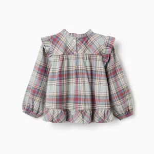 Blusa de algodón con volantes y cuadros para niñas