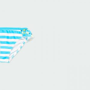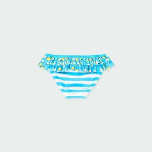 Braguita de poliamida de bebé niña de rayas en color turquesa y con volantes con estampado de flores en varios colores.