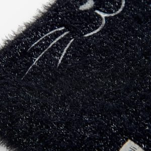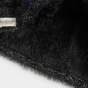 Cuello de niña de tricotosa en color negro. La decoración es un bordado y una etiqueta con detalle de la marca.