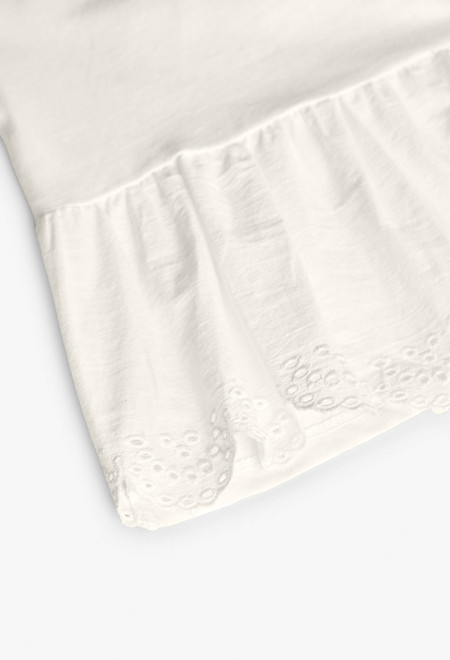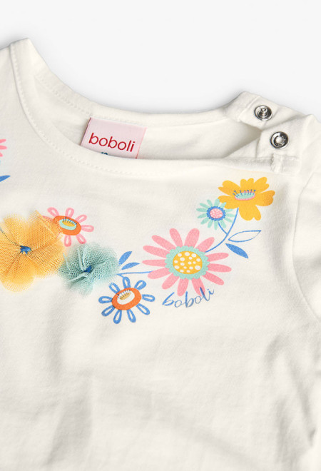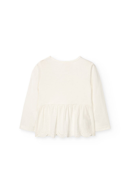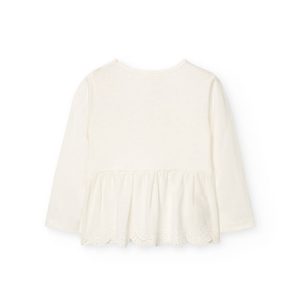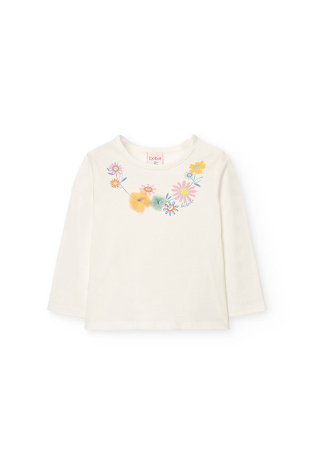 Camiseta blanca de manga larga con collar de flores. Camiseta blanca de manga larga con collar de flores en relieve con tonos pastel que aportan un toque divertido y alegre.