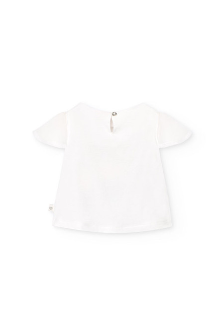 Camiseta blanca niña volantes chic. Camiseta blanca niña volantes chic que aportan un toque divertido y alegre.