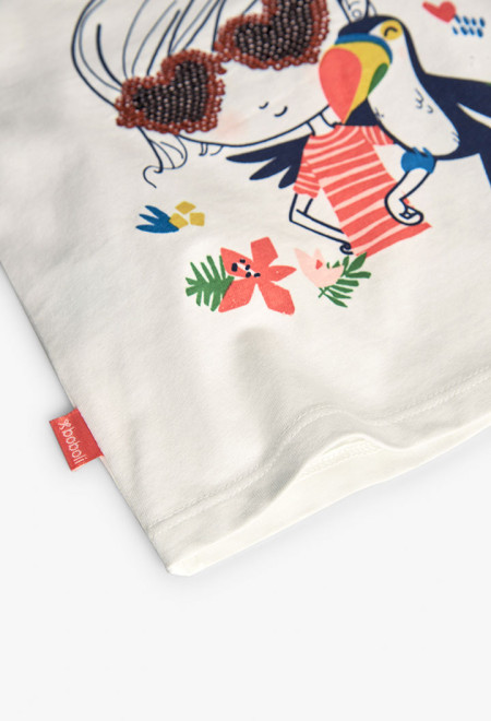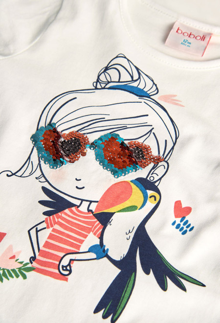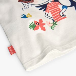 Su color blanco permite una fácil combinación con otras prendas. Presenta un diseño divertido con ilustraciones de animales, lo que la hace atractiva y alegre. El tejido es suave y cómodo, ideal para mantener a tu pequeña a gusto durante todo el día. Está disponible en tallas que cubren un rango continuo de edad, desde 6 meses hasta 8 años, adaptándose al crecimiento de tu niña. Esta camiseta puede ser estilizada con pantalones o faldas de colores vivos, ofreciendo múltiples opciones para cada ocasión.