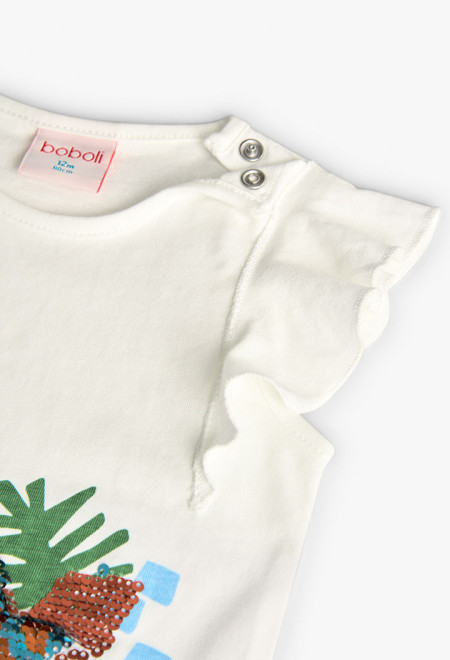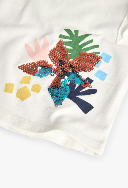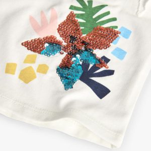Camiseta de lentejuelas niña. Camiseta de lentejuelas niña presenta una divertida ilustracion de una flor con lentejuelas reversibles, lo que la hace atractiva y alegre. El tejido es suave y cómodo, ideal para mantener a tu pequeña a gusto durante todo el día.