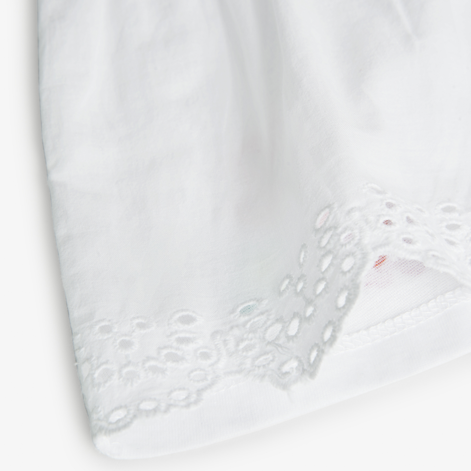 Esta es una camiseta de punto para bebé niña, disponible en tallas desde los 6 meses hasta los 8 años. Su diseño presenta un estampado alegre, ideal para la temporada de primavera. El tejido de punto proporciona comodidad y suavidad, perfecto para la delicada piel de los más pequeños. La camiseta tiene un cuello redondo y mangas largas, lo que la hace versátil para diferentes climas. Su color blanco la convierte en una prenda fácil de combinar con cualquier prenda inferior. Es una opción ideal para vestir a tu pequeña con estilo y confort.