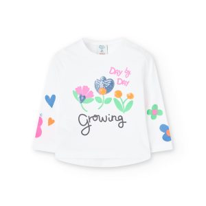 Camiseta de niña manga larga estampado de flores. Marca Boboli