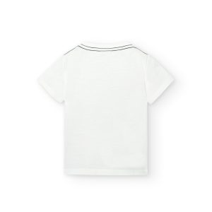 Esta es una camiseta de punto para niño, ideal para el verano. Se ofrece en tallas desde los 6 meses hasta los 8 años. Su color blanco la hace versátil para combinar con cualquier prenda. El tejido de punto le proporciona una textura suave y cómoda, perfecta para la delicada piel de los niños. Cuenta con un cuello redondo y mangas cortas, lo que la hace fresca y cómoda para los días calurosos. Además, tiene un estampado divertido que le añade un toque de alegría. Es una prenda básica para el armario de cualquier niño.