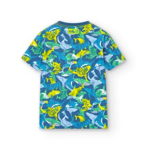 Esta camiseta de punto estampada para niño es ideal para la temporada de primavera y verano. Con un cuello redondo y mangas cortas, es perfecta para los días calurosos. El estampado en varios colores le da un toque divertido y moderno. Está disponible en tallas desde los 4 hasta los 16 años. El tejido de punto es suave y cómodo, ideal para la piel sensible de los niños. Esta camiseta es una opción versátil y fresca para el armario de cualquier niño.