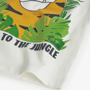 Esta es una camiseta de punto para niño, ideal para el verano. Disponible en tallas desde los 6 meses hasta los 8 años. Su tejido de punto es suave y cómodo, perfecto para la delicada piel de los pequeños. La camiseta es de color blanco, un tono versátil que combina con todo. Tiene un cuello redondo y mangas cortas, lo que la hace fresca y cómoda para los días calurosos. Además, cuenta con un estampado divertido que le añade un toque de alegría. Es una prenda básica y esencial en el armario de cualquier niño.