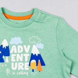 Camiseta de manga larga verde menta para bebé niño, 100% algodón. Estampado delante de montañas. Etiqueta interior estampada para no irritar la piel. Una camiseta suave y confortable, perfecta para combinar con cualquier estilo.