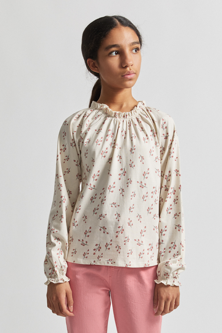 Camiseta de manga larga para niña, ideal para el día a día con un toque natural y delicado.
