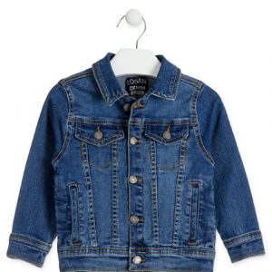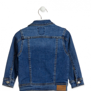 Cazadora vaquera de la colección esencial para niño. Cazadora con botones metálicos de color plata personalizados de marca Losan. Bolsillos con solapa en el pecho y bolsillos en la cintura. Pespuntes de dos colores. Con botones en los puños. Etiqueta imitación cuero en la cintura trasera.