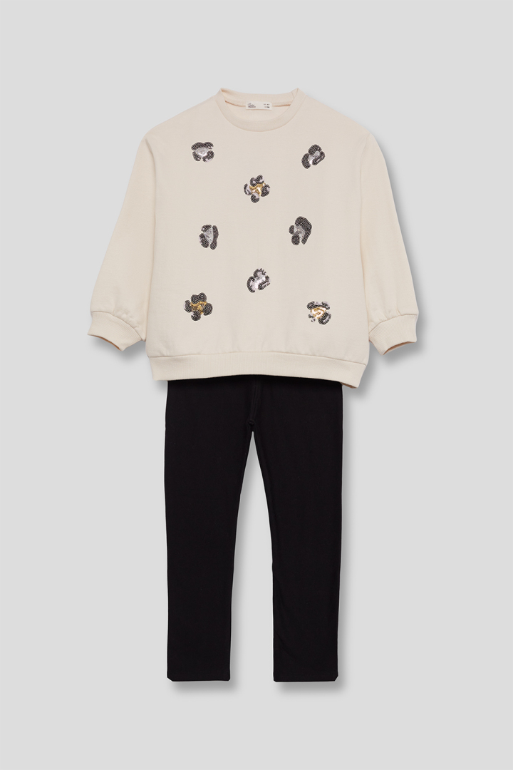 Un conjunto actual, versátil y muy fácil de combinar con zapatillas, botas o chaquetas. Perfecto para niñas de 2 a 16 años.