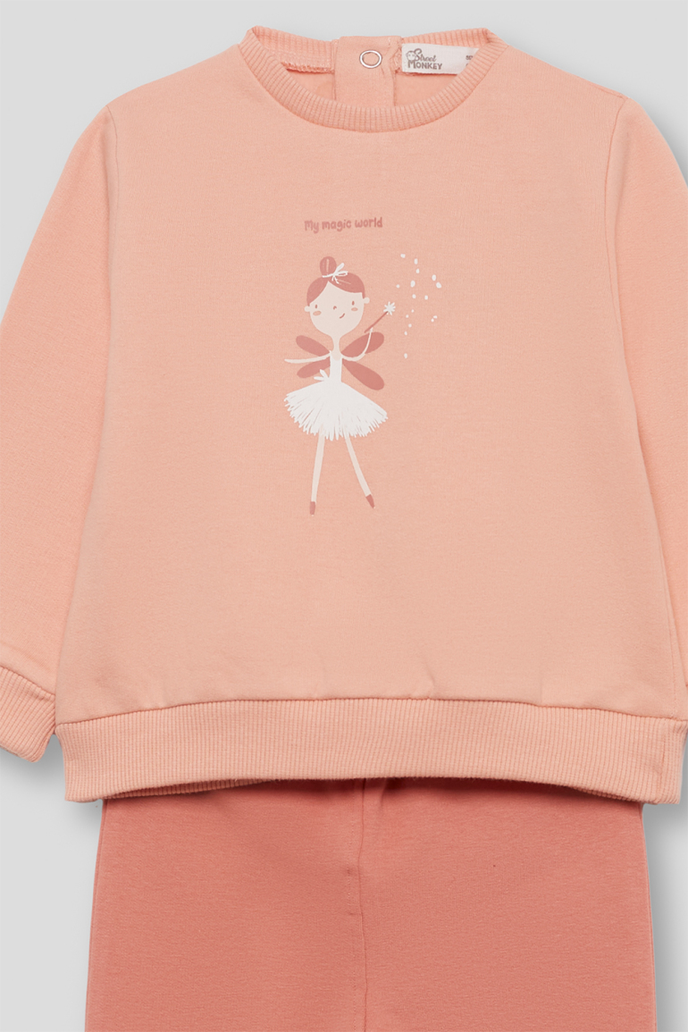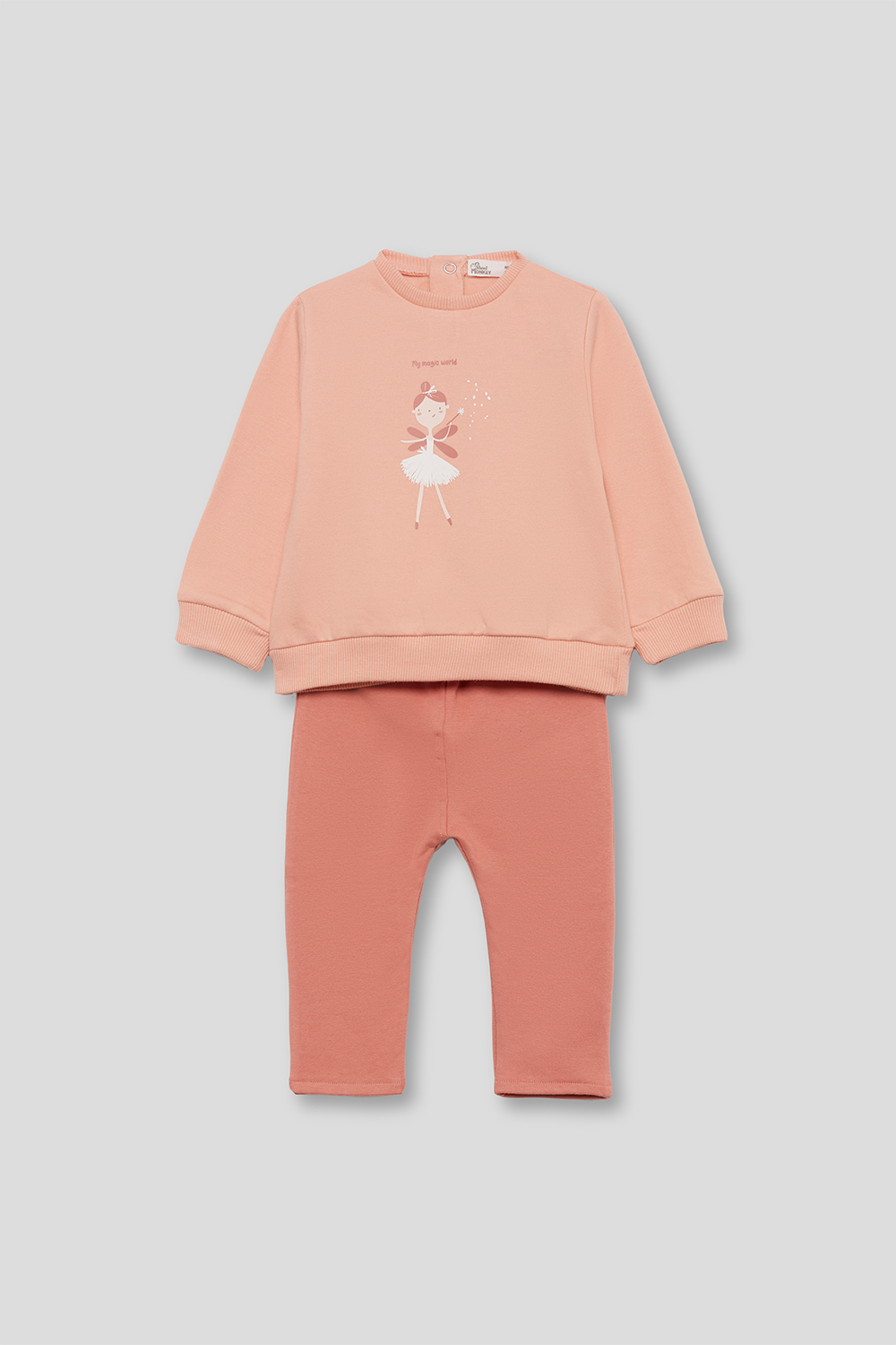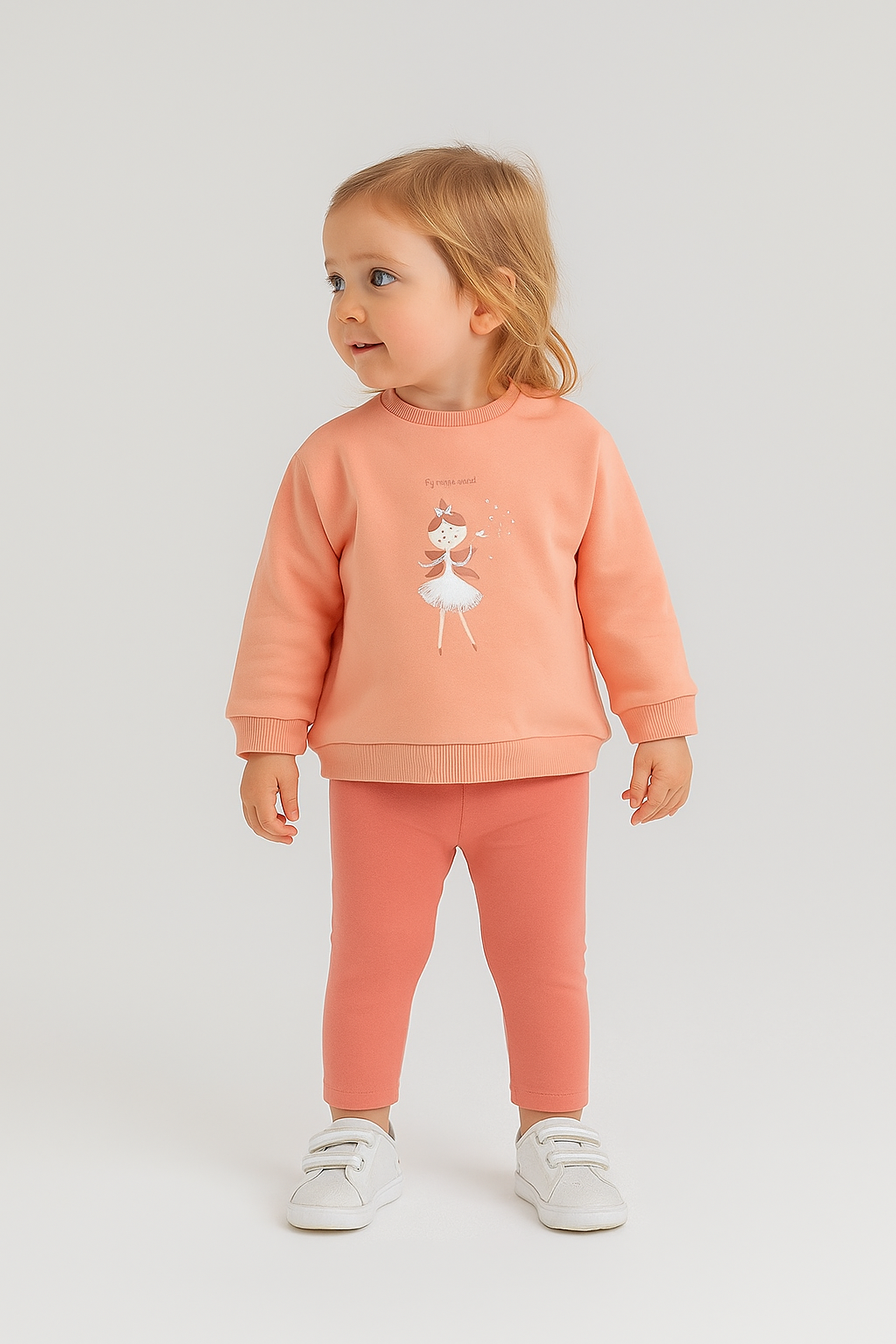 Conjunto para niña compuesto por sudadera y leggings, que combina comodidad y estilo en cada detalle. La sudadera luce un delicado estampado de hada con brillantes detalles, además de contar con un cuello redondo y puños elásticos para un ajuste perfecto.