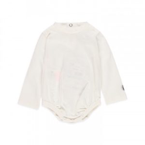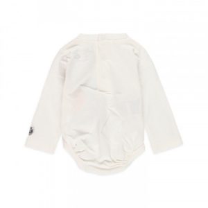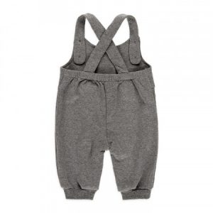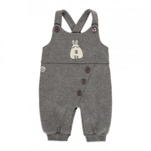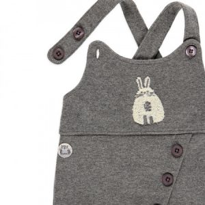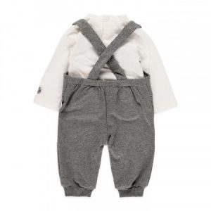 Peto de color gris con estampado delantero en el pecho. cierre a botones. Body blanco cuello canalé con cierres en la parte trasera de botón a presión.