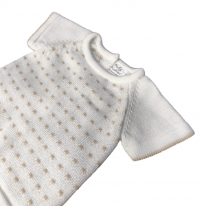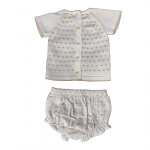 Este encantador conjunto está diseñado con los más suaves hilos de punto, asegurando la máxima delicadeza para la piel sensible de tu bebé.