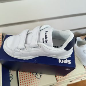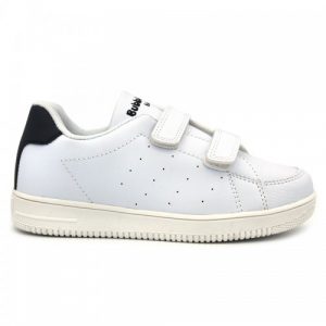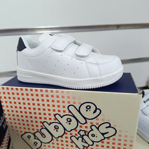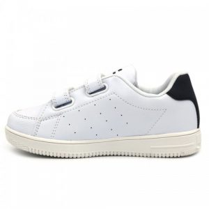 Un modelo ideal para combinar con cualquier look tanto para niño cómo para niña y además super cómodo para llevarlo al cole, ya que es sencillo, ligero y con cierre de velcro doble que facilita que se lo pongan los más peques, además de proporcionar un mejor agarre. Está fabricado en un material liso con el detalle de un punteado en los laterales. Su interior es de textil para que respire bien el pie y sea cómodo al caminar. La suela es de goma gruesa que no resbala en color blanco.