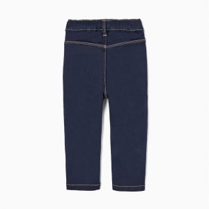 Jegging azul oscuro para bebé niña, de denim de algodón con una pizca de elasticidad para un mayor confort y libertad de movimientos. Cintura elástica para vestir con facilidad, ajustable en el interior para un ajuste perfecto. Dos bolsillos. Costuras a contraste. Un par de pantalones cómodos y fáciles de vestir, perfecto para el día a día.