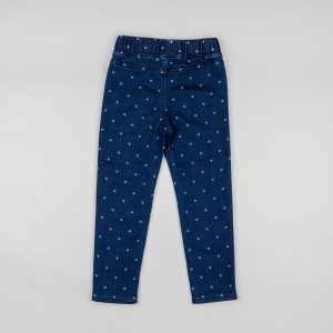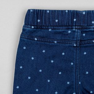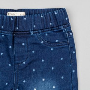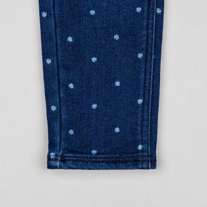 Pantalón vaquero azul oscuro para niña, de denim de algodón y elastán para un mayor confort y libertad de movimientos. Denim Fit. Con estampado de corazones. Cintura ajustable en el interior con elásticos y botones. Cinco bolsillos. Big Me: cierre con broche a presión bajo botón decorativo hasta la talla 5/6, para ser fácil de vestir y promover la autonomía de tu hijo.