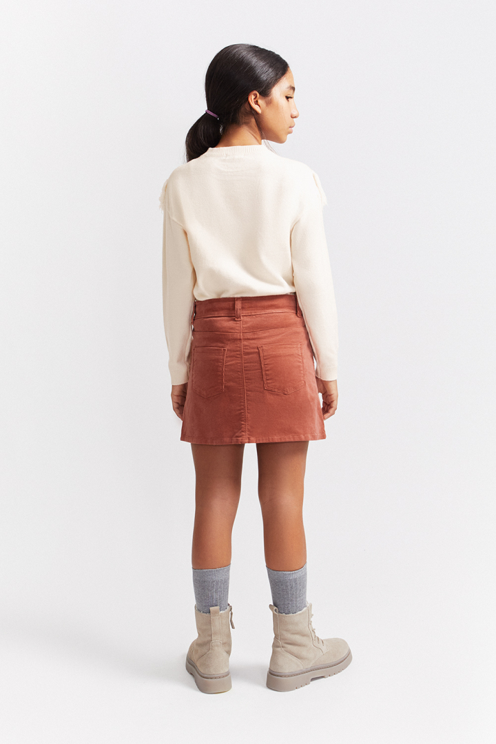 Con cuello redondo y acabados de canalé en puños y bajo, es cálido, cómodo y muy fácil de combinar con faldas, leggings o jeans. Disponible desde la talla 2 hasta 16 años, es ideal para los días fresquitos de otoño e invierno