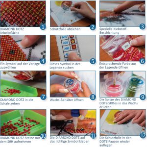 Con Diamond Dotz podrás crear cautivadores diseños con pequeños diamantes que producirán un impresionante efecto brillante que no dejará indiferente a nadie. Artesanía y diversión se unen en una nueva y espectacular forma de pintar. Packs que incluyen todos los elementos necesarios para completar llamativas creaciones.