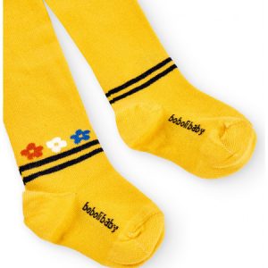 Leotardo de niña en color amarillo con jacquard de flores multicolor.