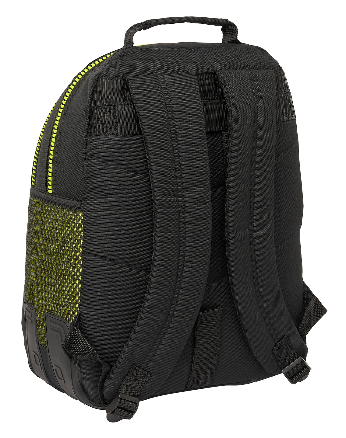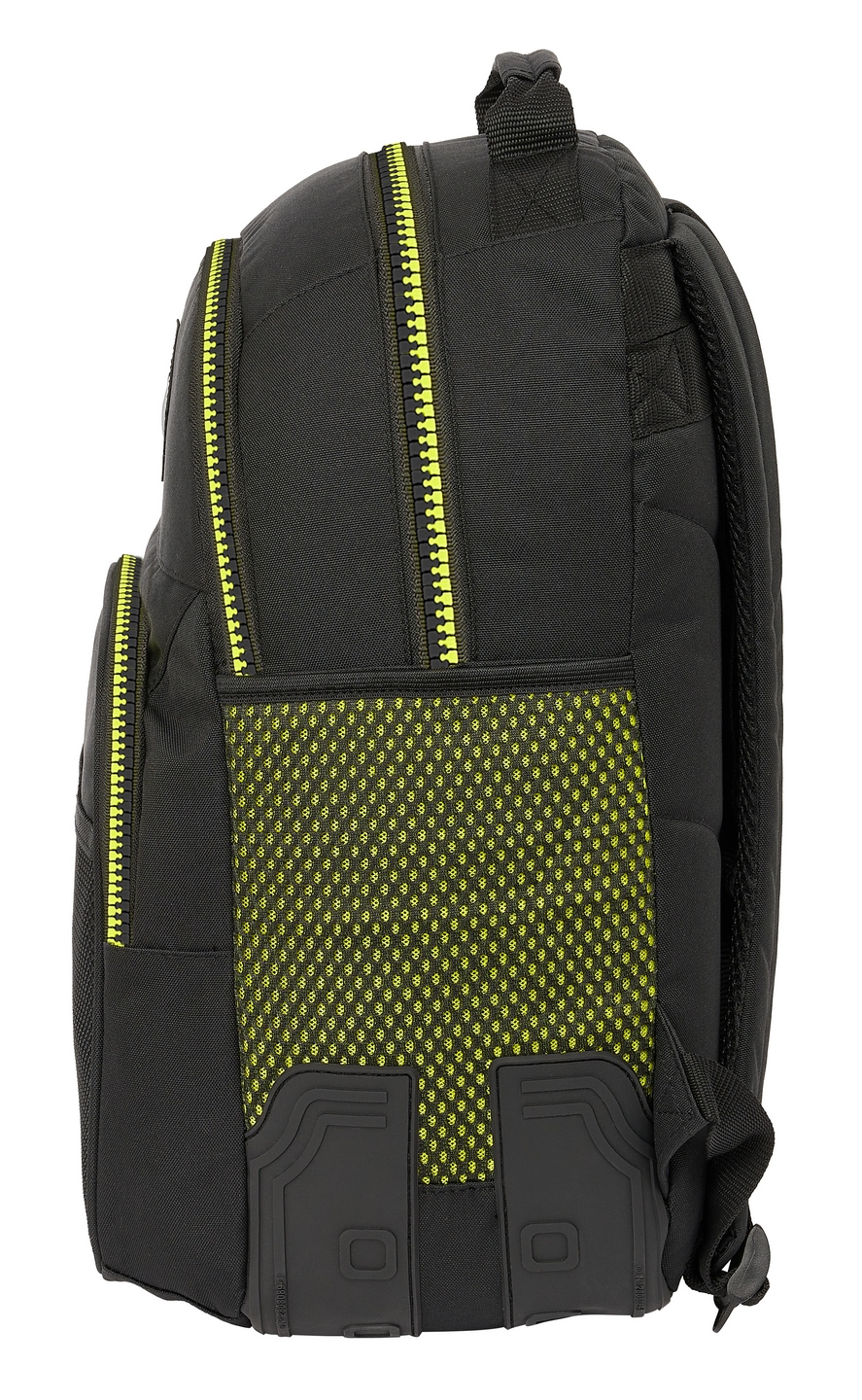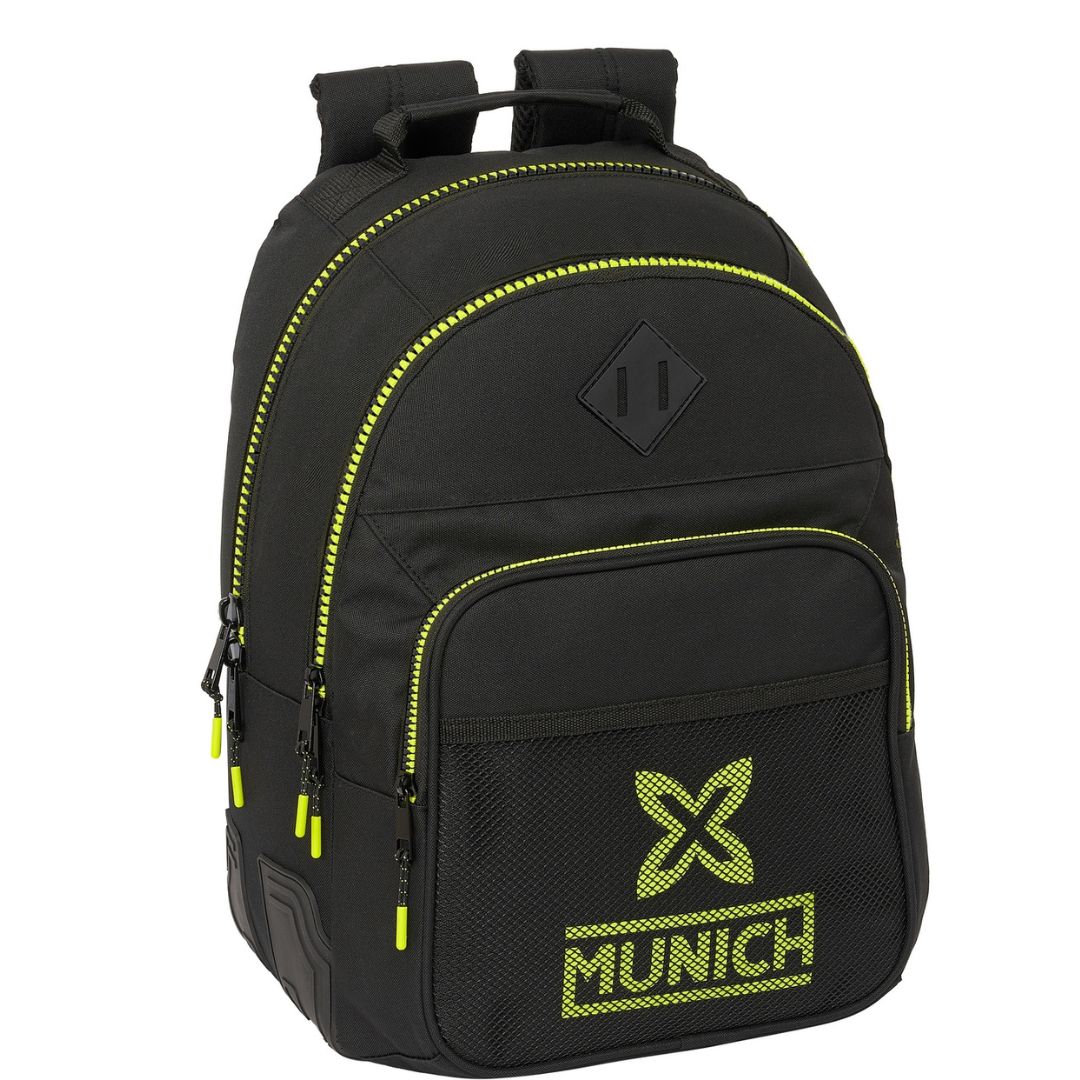 La mochila Safta Munich “Beat” es ideal para el uso escolar, recomendada especialmente para niños. Esta mochila, con 2 años de garantía, presenta cantoneras de goma antirozaduras en ambos lados para mayor durabilidad (patentado Safta). Es adaptable a carro portamochilas y cuenta con dos departamentos grandes con cremallera para una organización eficiente. Además, incluye un doble bolsillo frontal con organizador interior, un bolsillo lateral para botellas y un doble tirador en las cremalleras principales para facilitar su apertura. Sus hombreras y espalda son ergonómicas y acolchadas para mayor comodidad, y el asa de mano forrada en la parte superior proporciona un agarre cómodo. Con unas dimensiones de 320x150x420 mm y una capacidad de 20 litros, esta mochila combina funcionalidad y estilo para los estudiantes.