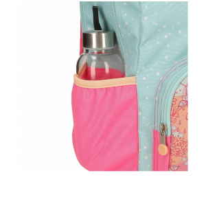 Un bolsillo frontal y dos bolsillos laterales de red para guardar los pequeños accesorios y el almuerzo.