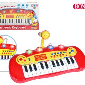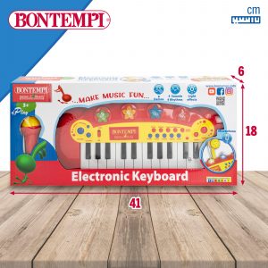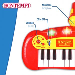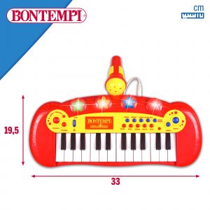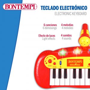 ¡Sumérgete en el mundo musical desde bien pequeñito con este mini teclado electrónico de juguete con micrófono y efectos luminosos Bontempi! Gracias al soporte que incluye el teclado para dejar el micrófono, podrás tocar y cantar a la vez, ¡qué guay! Es un juguete educativo con muchos estímulos ya que incluye una gran variedad de sonidos, ritmos y melodías que inundarán de emociones a tu pequeño. ¡Sacará toda su creatividad con este divertido teclado electrónico!