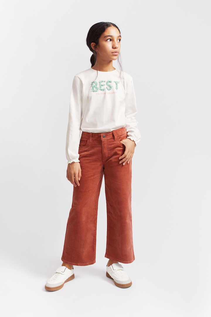 Pantalón pana niña ideal para el día a día, que combina comodidad, estilo y calidez.