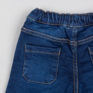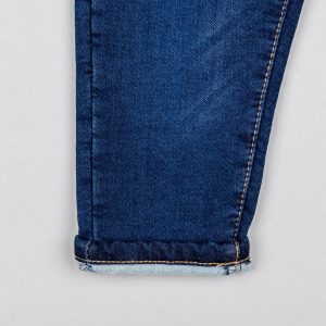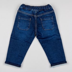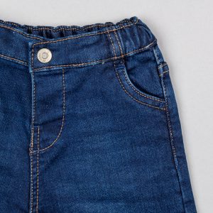 Pantalón vaquero azul para bebé niño, de denim de algodón con elasticidad, para un mayor confort y libertad de movimientos. Modelo deportivo con cintura elástica y cierre de boton para vestir con facilidad. Bajos doblables. La versatilidad de un pantalón vaquero con el confort de un pantalón de chándal, todo en una sola prenda.