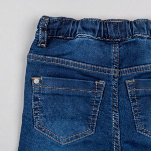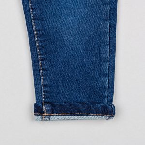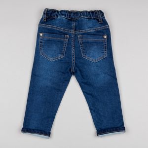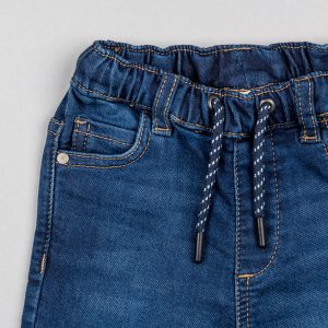 Pantalón vaquero azul para bebé niño, de denim de algodón con elasticidad, para un mayor confort y libertad de movimientos. Modelo deportivo con cintura elástica y cordón de ajuste a contraste para vestir con facilidad. Cinco bolsillos. Bajos doblables. La versatilidad de un pantalón vaquero con el confort de un pantalón de chándal, todo en una sola prenda.