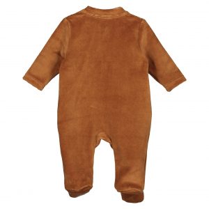 Este adorable pelele para recién nacidos está confeccionado en un suave tejido esponjoso de tono caramelo, pensado para mantener al bebé abrigado durante la estación fría.