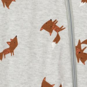 Confeccionado en un suave tono gris claro, destaca por su tierno estampado de zorro que enamora a primera vista. Incluye una cremallera de longitud completa con protector de barbilla, lo que permite vestir y desvestir al bebé de forma sencilla y segura. Sus pies integrados mantienen los deditos siempre calentitos, proporcionando la máxima comodidad en todo momento.