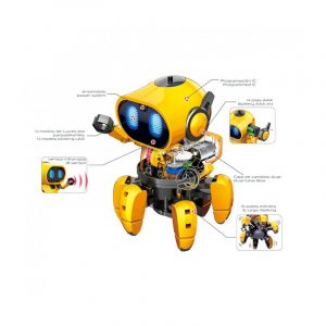 ¿Conoces a Smarty Bot? Se trata de un robot reprogramable y funcional ideal para iniciar el aprendizaje en robótica de manera fácil, creativa y divertida. Gracias a sus seis patas podrá girar 360 grados. Cuenta con el modo sígueme en el que el robot sigue cualquier objeto o persona que se acerca y el modo exploración donde observa el ambiente evitando los obstáculos. Cuenta con unas medidas aproximadas de 17 cm. ¡Es alucinante!