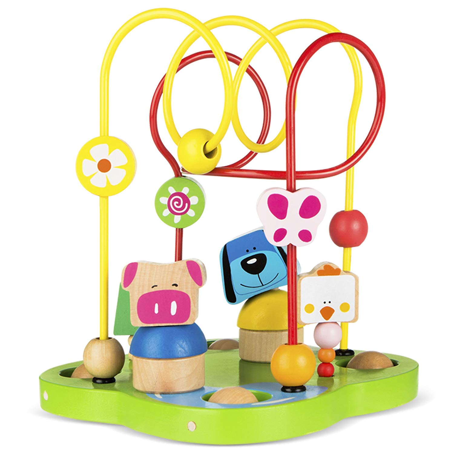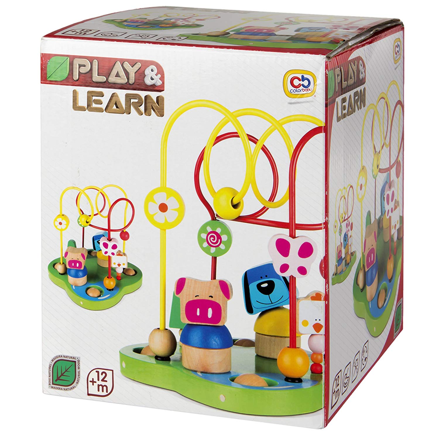 Un colorido cubo de madera con distintas actividades que fomentan el desarrollo de los niños mientras juegan.