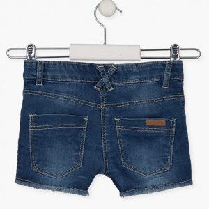 PANTALÓN CORTO con bajo deshilachado denim medio niña