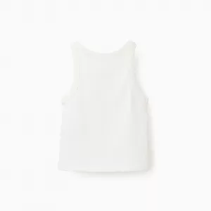 Top acanalado blanco para niña, en algodón con un toque de elasticidad para mayor comodidad y libertad de movimiento. Etiqueta interior estampada para no irritar la piel. ¡Una opción de moda que a las niñas les encantará! We Care: artículo con certificado Oeko-Tex Standard 100, que garantiza la ausencia de sustancias nocivas o irritantes para la piel.