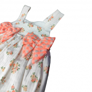 Este encantador vestido de tirantes en blanco con un vibrante estampado de flores y toques de color naranja es la combinación perfecta entre dulzura y frescura, diseñado especialmente para recién nacidas que deslumbrarán desde el primer día.