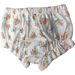 Completa el look con la braguita a juego, que presenta el mismo estampado de flores en tonos naranjas. Esta braguita no solo garantiza comodidad, sino que también complementa a la perfección el conjunto, creando un conjunto coordinado y adorable.