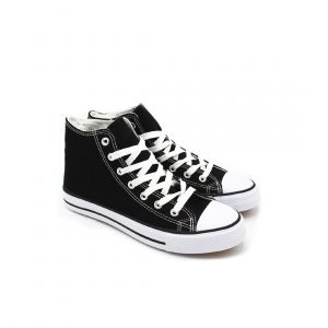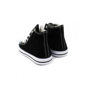 Este modelo junior de botines de lona estilo All Star es de color negro fabricada en textil y puntera de goma.Los botines de lona se convierten en un imprescindible tanto para niños como para adultos, ya que puedes encontrarlos en distintos colores. Es un calzado que no pasa de moda desde que se convirtieron en un icono pop en los 80´s, son cómodas y combina con todos los estilos.
