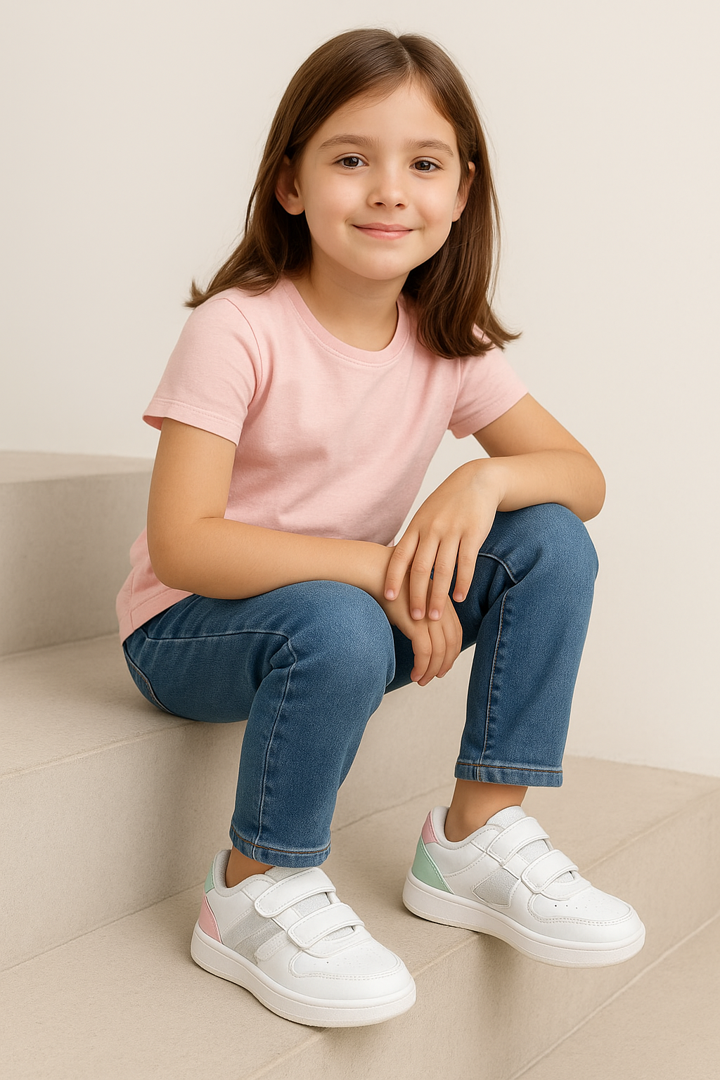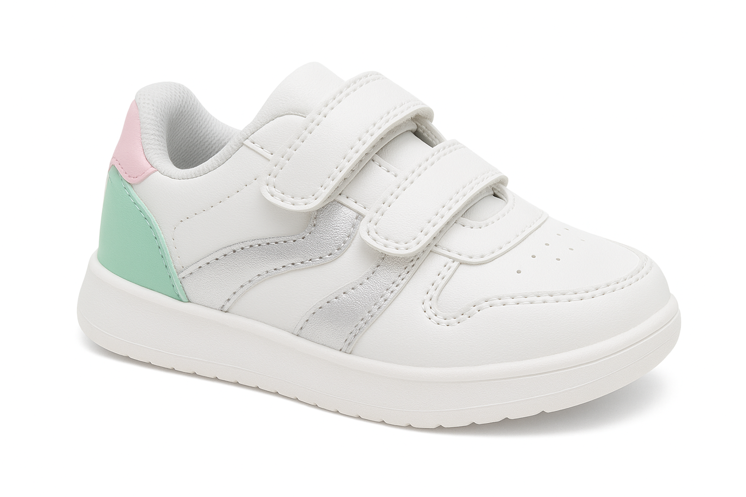 Ideales para el día a día, estas zapatillas combinan comodidad y resistencia, con cierres de velcro fáciles de usar y detalles en rosa y verde pastel que encantan a las niñas. Perfectas para la vuelta al cole, el parque o cualquier aventura diaria.