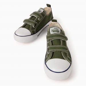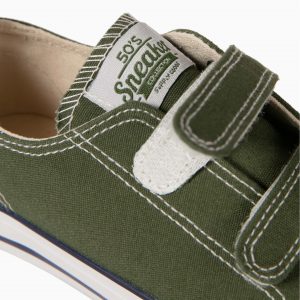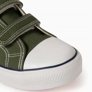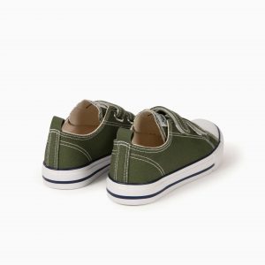 Zapatillas infantiles verdes, con parte superior de lona canvas. Cierre con tiras autoadherentes, para calzar y ajustar con facilidad. Suela de goma vulcanizada y antideslizante, para una mayor resistencia y durabilidad. Big Me: plantillas con semicírculos para que el niño identifique por sí solo el pie correspondiente, desarrollando su autonomía.